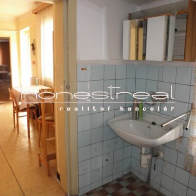 Dům ve tvaru U je v původním stavu, určený k modernizaci a rekonstrukci, kdy na obytnou část navazuje kotelna 8 m2, stodola 25 m2 a přízemní zděný objekt využívaný jako sklep 18 m2 se samostatnými vstupy z dvorku. Část střešní krytiny určena k výměně, krovy v dobrém stavu, stropy palach, nad garáží hurdisky, podlahy beton, v 1.NP vlhké zdivo do výše 0,5 – 1 m, nutno provést izolaci proti zemní vlhkosti u celého 1.NP. Okna dřevěná, dveře původní dřevěná. IS – obecní voda, plyn, el. 220 V hliník, napojeno na obecní kanalizaci, vytápění plyn.kotlem zn. Destila, ohřev vody el.bojler zn. Tatramat.
