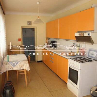 Dispozice: garáž se samostatným vstupem z ulice, obytná část – vstupní chodba, pokoje 18 m2 + 22 m2 + 16 m2, kuchyň 11 m2, koupelna s vanou 7 m2, samostatné WC, zastřešená terasa se vstupem na dvorek (zámková dlažba, po levé straně obezděná hranice pozemku, malá část i zatravněná), z obývacího pokoje samostatný vstup na schodiště vedoucí do 2.NP, kde se nachází poslední pokoj 19 m2 a půdní prostor (nad garáží), možnost dalšího rozšíření obytné plochy. V domě zůstane KL ( sporák bude odvezen) a starší nábytek.